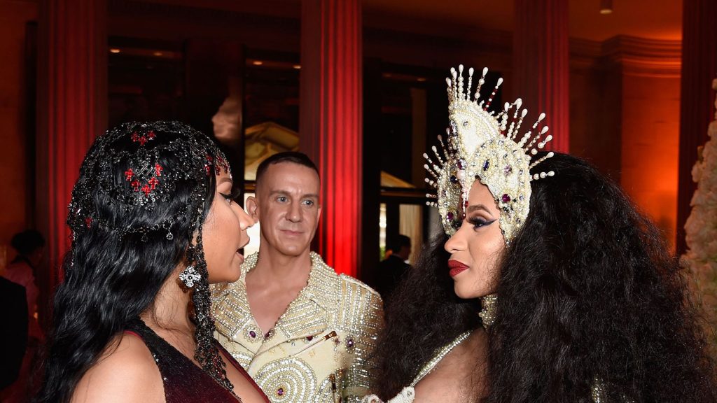 The feud reached its most infamous moment in September 2018 during New York Fashion Week at the Harper’s Bazaar ICONS party. Multiple videos show Cardi B lunging toward Nicki Minaj after a heated exchange. In one viral clip, Cardi can be seen throwing her red high heel shoe in Nicki’s direction before security intervenes. Photographs captured Cardi leaving the event barefoot with a visible bump above her left eye and her gown torn at the shoulder. The images and video footage from outlets like BBC News and TMZ remain some of the most-circulated evidence of their physical confrontation (BBC News NYFW Altercation Coverage).